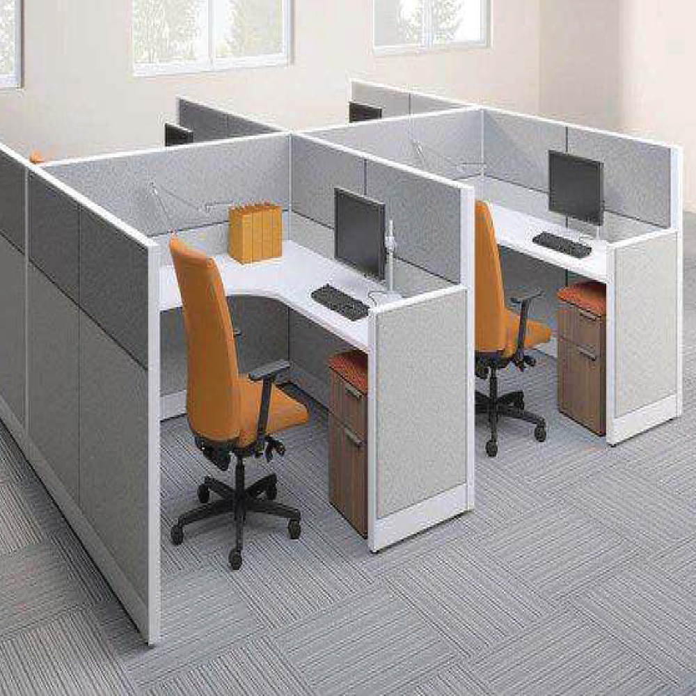 Each workstation comes equipped with side storage compartments, perfect for holding documents, gadgets, or personal accessories—keeping the desktop clear and organized.